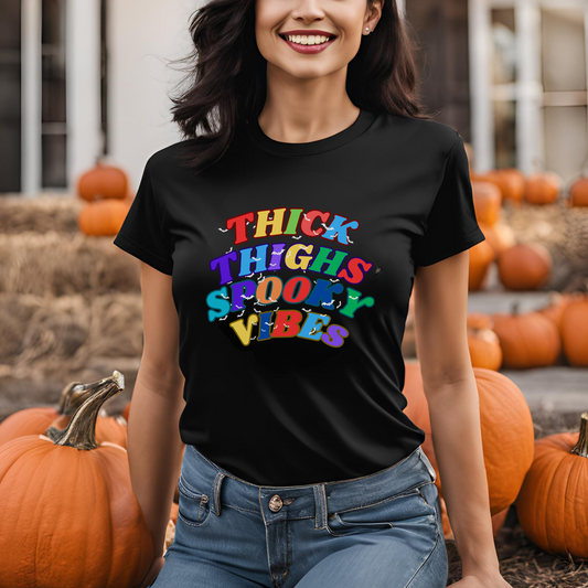 Female round neck t-shirt- Thick Thighs Spooky Vibes