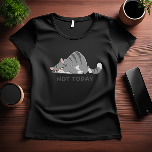 Female Round neck t-shirt- Not today lazy cat
